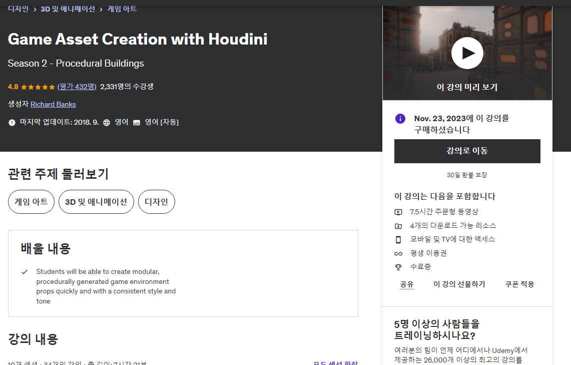 후디니로 전부 제작하는 프로시쥬얼 빌딩! ( 프로시쥬얼 건물 이해하는데에 도움 , 후디니 이해하는데에 중점을 두는게 좋음 / 세일하면 12000원까지감 세일 자주하니 기다리세요 )